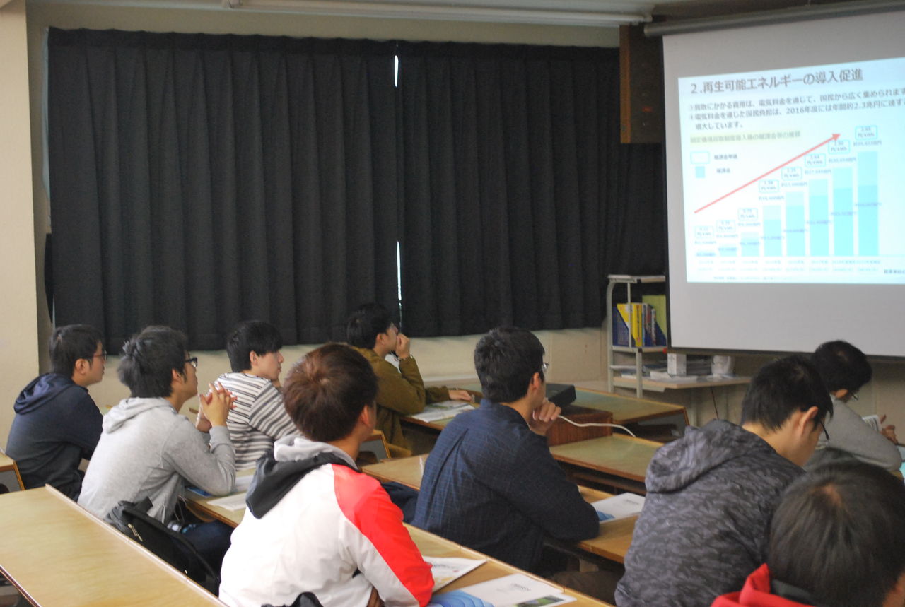 直接見に行くことはできませんでしたが、発電所を運営している大林クリーンエナジーの方に様々な再生可能エネルギーについての講演をしていただくことができました。